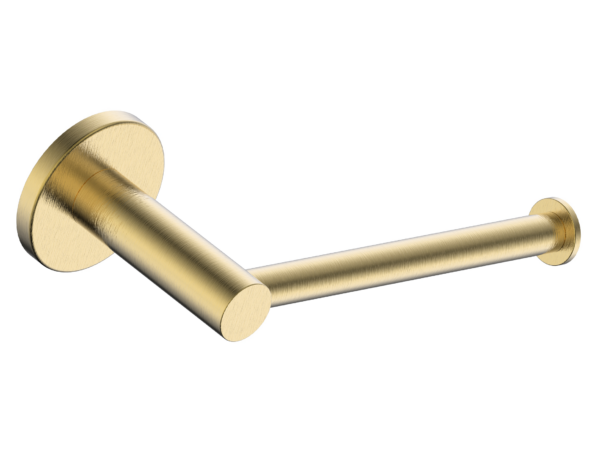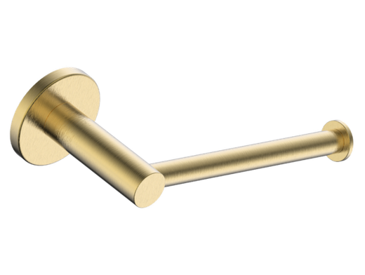 Soporte para papel higiénico de estética refinada en acabado oro cepillado. Fabricado en acero inoxidable S.304, este accesorio de la serie Essential combina un diseño de formato abierto con la máxima durabilidad. Su instalación es sumamente sencilla, permitiendo fijarlo a la pared mediante tornillería o adhesivo de alta resistencia.